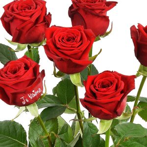 Cette jolie brassée est composée de 12 roses rouges à gros boutons mesurant 60cm de long. Un bouquet qui ne manquera pas de faire plaisir à votre moitié, grâce à sa rose marquée “Je t’aime”. Une création originale qui saura témoigner de votre amour éternel.