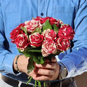 Bouquet de 15 roses arlequin