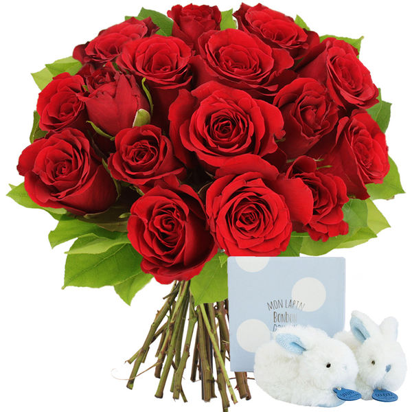 Ce bouquet est accompagné d’un coffret de naissance bleu signé Doudou&Compagnie, pour encore plus de douceur et de tendresse.
