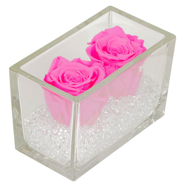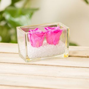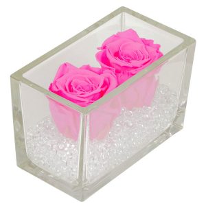 Ces deux roses éternelles roses sont un véritable bijou, ornées de cristaux transparents dans un contenant en verre rectangulaire. Elles sont idéales pour apporter une touche de couleur et d’élégance à n’importe quel intérieur. Leur aspect éternel en fait également un cadeau parfait pour symboliser un amour éternel.