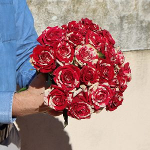 Un bouquet de 20 roses arlequin pour une déclaration en couleurs