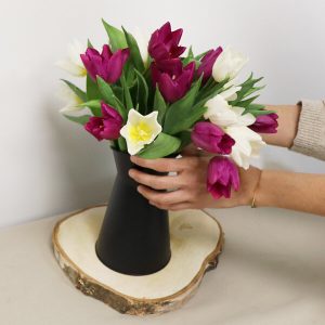 Offrez-vous un bouquet de tulipes aux couleurs envoûtantes pour égayer votre maison en cette saison hivernale. Avec leur blanc profond et leur violet mystérieux, ces fleurs apporteront une touche de chaleur et de mystère à votre décoration.