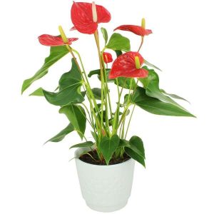 Un anthurium rouge de 50cm dans son pot en céramique