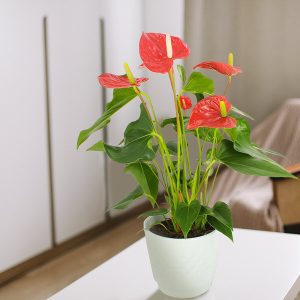 Originaire des tropiques, l’anthurium apporte une touche exotique à votre intérieur. Cette plante s’adapte parfaitement à nos intérieurs à condition d’y apporter quelques soins. Elle ne supporte pas le soleil direct, mais a besoin de beaucoup de lumière. Ainsi, il est préférable de l’installer près d’une fenêtre pour lui offrir la lumière dont elle a besoin. Une température comprise entre 18 et 21°C est idéale pour cette plante, cependant lorsque le chauffage est en marche et que l’air devient sec, il est important de pulvériser régulièrement de l’eau sur son feuillage.