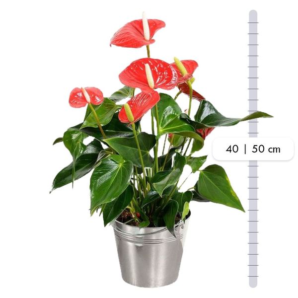 Cet anthurium rouge de 40 à 50cm est présenté dans un pot zinc de 14cm de diamètre, ce qui en fait un élément décoratif à part entière. Son feuillage luxuriant et ses fleurs éclatantes apporteront une touche de couleur et de fraîcheur à votre intérieur.