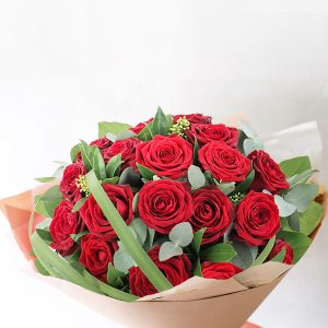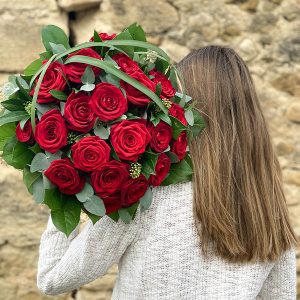Symbole ultime de passion, le bouquet de roses rouges ne cesse de charmer. Mis en valeur par un feuillage élégant, ce bouquet exprime simplement et sincèrement les mots tant attendus : “Je t’aime”.