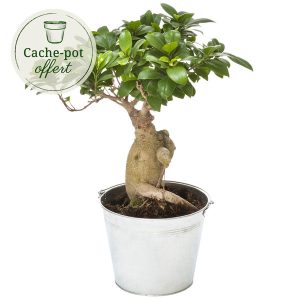 Bonsai ginseng + pot en zinc