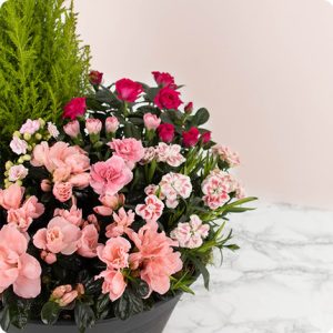 Cette composition florale délicate et réconfortante est composée de végétaux et de plantes fleuries dans des teintes roses. Elle transmettra avec élégance vos messages de condoléances pour un dernier hommage empreint de tendresse et de douceur.