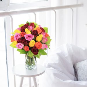 Ce bouquet de 40 roses multicolores est un véritable concentré de bonheur à offrir sans hésitation. Les roses, aux couleurs chatoyantes, apporteront une touche de gaieté et de lumière dans n’importe quel intérieur. Elles sont également parfumées, pour une expérience sensorielle complète. Cette brassée de roses est un présent précieux et irremplaçable pour témoigner de votre affection et de votre générosité.