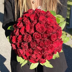 Capiteuse et luxuriante, cette brassée représente parfaitement l’amour grâce à ses roses rouges. Selon la légende, elles sont devenues rouges après que Cupidon a renversé son verre de vin dessus. Un symbole précieux pour déclarer votre amour éternellement.