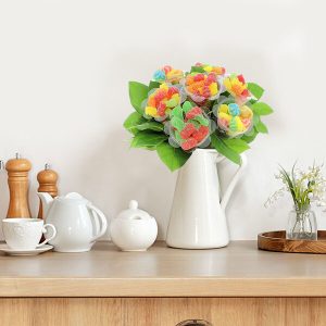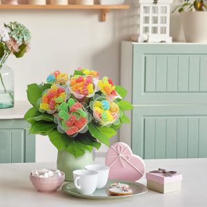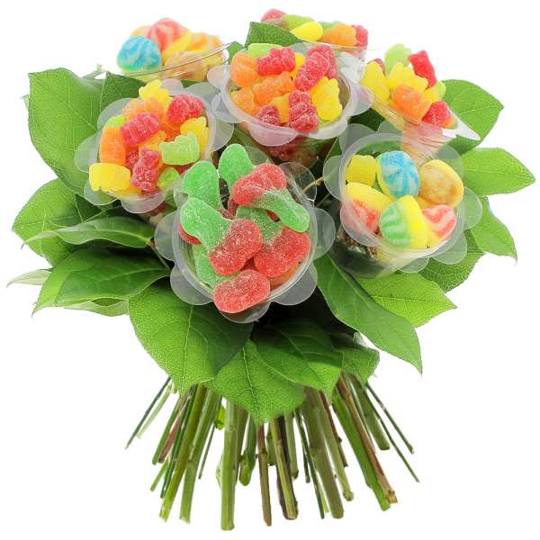Offrez-vous un bouquet de fleurs à déguster avec tendresse grâce à Florajet ! Ces fleurs sont en réalité des bonbons savoureux qui viennent égayer ce joli bouquet de feuillage. Les petites boîtes, telles des fleurs, contiennent une variété de bonbons gélifiés aux différentes saveurs pour apporter couleur et fantaisie à ce cadeau gourmand. Une idée originale et ludique à consommer sans modération !