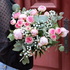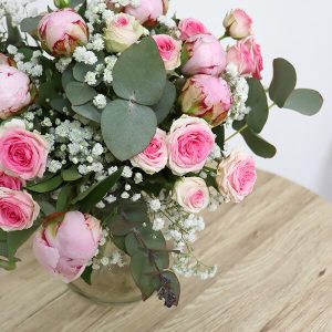 Notre bouquet mini Calliope est composé de pivoines, de roses mini eden, de gypsophile et d’eucalyptus. Ces fleurs délicates et élégantes apporteront une touche de fraîcheur à votre intérieur. Offrez ce bouquet en cadeau ou offrez-vous un peu de douceur en le gardant pour vous.