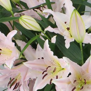 Aérien et élégant, le lys séduit par son élégance et subjugue par son parfum capiteux. Délicatement rosée, cette sublime brassée de fleurs est un hymne à l’innocence et à la douceur. Parfait en toutes occasions, le lys est la reine des fleurs, la fleur des rois !