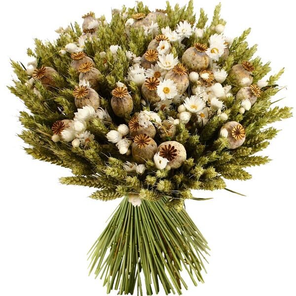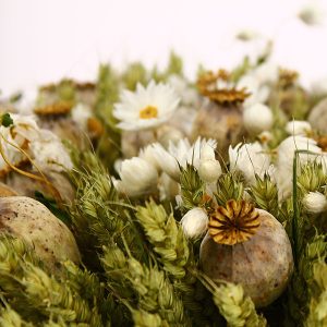Craquez pour la tendance du moment avec ce bouquet de fleurs séchées dans les tons blancs, composé de blé, pavot et marguerites. Laissez-vous transporter dans vos souvenirs de vacances grâce à son odeur enivrante.