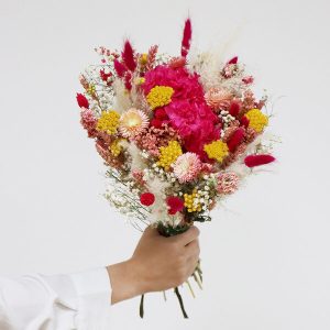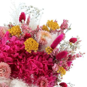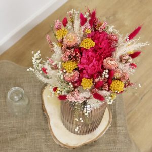 La tendance des fleurs séchées est toujours présente cette année avec notre nouveau bouquet Baya. Dans cette création florale, le rose est à l’honneur, symbolisant la délicatesse et l’élégance intemporelles. Confectionné avec soin, cet ensemble floral réunit un assortiment élégant de végétaux séchés et une magnifique tête d’hortensia stabilisé, offrant ainsi une composition artisanale raffinée. Ajoutez une touche de douceur et de charme à votre décoration intérieure en commandant dès maintenant votre bouquet Baya.