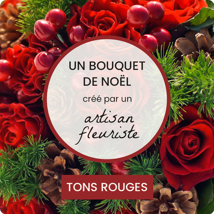 Laissez libre cours au talent de notre artisan fleuriste en choisissant notre bouquet de Noël dans les tons rouges. Composé avec soin et créativité, ce bouquet festif sera réalisé avec des fleurs et feuillages de saison, sélectionnés au gré de l’arrivage du fleuriste.