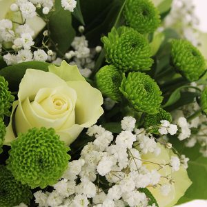 Exprimez votre affection de manière élégante avec cet arrangement floral minutieusement composé par nos talentueux fleuristes. Les tons blanc et vert apportent une touche de fraîcheur à ce bouquet qui saura ravir les yeux de son destinataire.