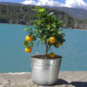 Pour prendre soin de votre calamondin, il suffit de l’arroser modérément dès que le sol est sec. Sa hauteur moyenne est de 40/45cm et il est livré dans un pot en zinc de 14cm de diamètre. Veuillez noter que les oranges ne sont pas comestibles à la réception de la plante car elles sont encore en début de croissance. La présence de fruits dépendra de la saison.