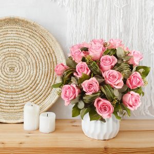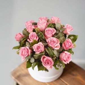 Ce magnifique bouquet de roses est rendu unique grâce à la technique habile du beargrass. Il est l’un des incontournables de notre collection pour exprimer des sentiments doux et sincères.