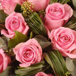 Notre bouquet rond est composé de délicates roses roses, de beargrass retourné et d’autres feuillages tels que le skimmia, l’eucalyptus et le salal. Le prix des roses peut varier en fonction de la variété et de la période, ce qui peut entraîner un nombre différent de tiges pour un bouquet au tarif affiché.