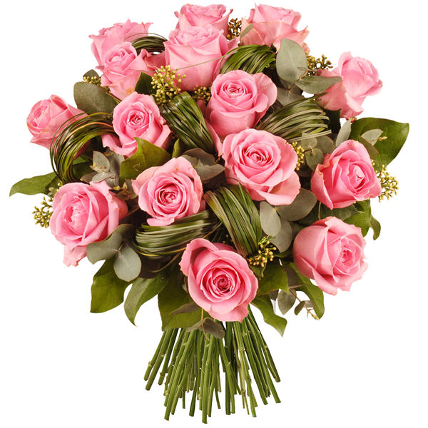 Notre bouquet rond est composé de délicates roses roses, de beargrass retourné et d’autres feuillages tels que le skimmia, l’eucalyptus et le salal. Le prix des roses peut varier en fonction de la variété et de la période, ce qui peut entraîner un nombre différent de tiges pour un bouquet au tarif affiché.
