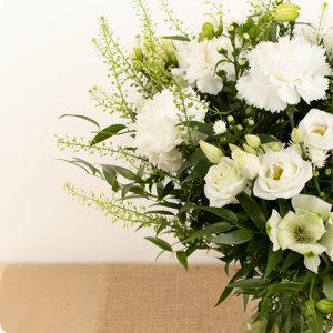 Candide : une création florale composée de fleurs blanches et de feuillages variés