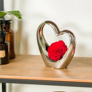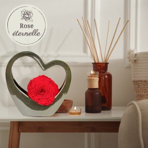 Ce cœur en céramique d’une taille de 20cm renferme une rose éternelle rouge, symbole de l’amour éternel.