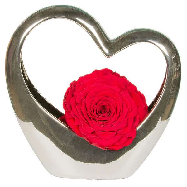 Ce cœur en céramique d’une taille de 20cm renferme une rose éternelle rouge, symbole de l’amour éternel.