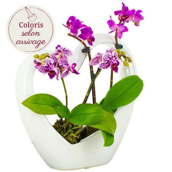 Ce cœur en céramique, d’une taille de 25cm, renferme deux mini-orchidées aux couleurs variées (selon arrivage). Nous vous garantissons un produit de qualité en veillant à ce que l’orchidée ne voyage pas dans son cœur en céramique.