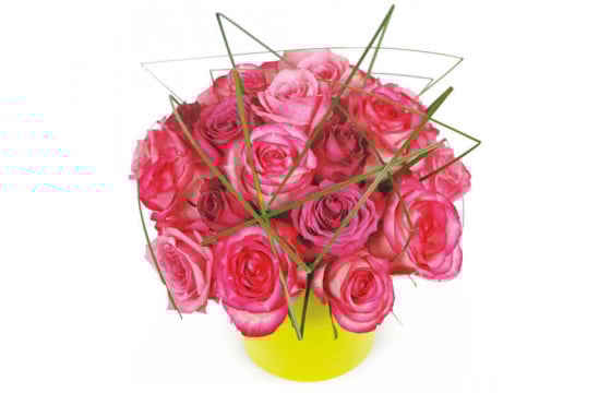 Cette composition de roses roses oscille entre la fragilité des fleurs et la fraîcheur tonique de la verdure. Elle met en valeur le caractère exceptionnel et original de la personne à qui vous l’offrirez. Idéale pour une grande première, une représentation théâtrale ou en guise de remerciement lors des spectacles de fin d’année de vos enfants.