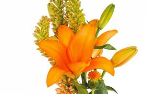 Faites-vous plaisir avec cette magnifique création florale présentée dans un pot de fleurs orangé. Elle est composée de lys, de roses orange, d’erumerus pour apporter de la hauteur et de cathamus à la base.