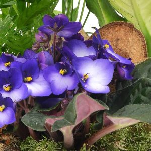 Ce panier de plantes est composé de différentes variétés de plantes mauve et blanc, ainsi que de plantes vertes et fleuries. Les écorces ajoutent une touche naturelle à l’ensemble. Veuillez noter que le contenant peut varier selon les disponibilités et que les plantes peuvent varier en fonction des saisons.