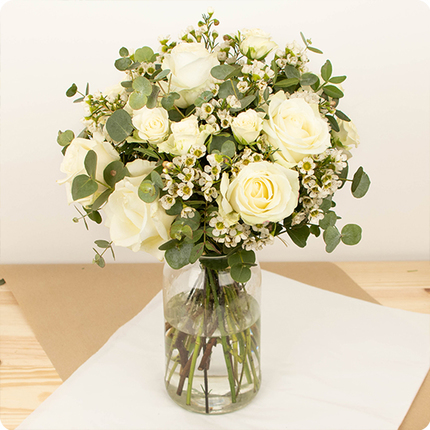 Notre bouquet Coton est une création florale qui saura impressionner votre destinataire par son élégance et son raffinement. Composé de magnifiques roses blanches et d’un délicat feuillage, il apportera une touche de douceur et de tendresse à vos messages.