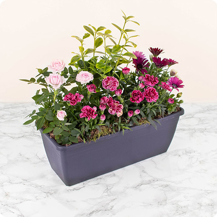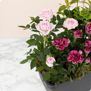 Cette composition florale est constituée de plantes fleuries aux teintes roses, symbolisant l’affection que vous ressentez pour un être cher. Elle est agrémentée de délicats végétaux pour créer un ensemble plein de tendresse et de douceur. Elle est idéale pour transmettre vos messages de condoléances avec délicatesse.