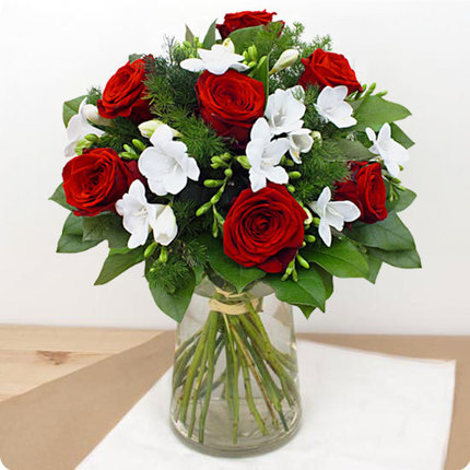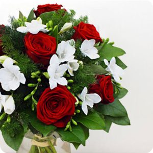 Pour exprimer votre amour, offrez le bouquet Diamant, un véritable bijou de fleurs qui saura faire sensation auprès de votre bien-aimé(e). Composé de roses rouges et de fleurs blanches de saison, ce bouquet est parfait pour transmettre votre passion avec délicatesse.