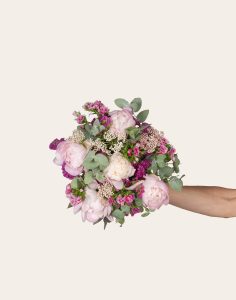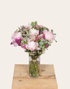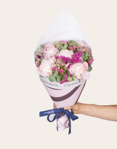 Ce magnifique bouquet, co-créé par Caudalie et Monsieur Marguerite, est composé de fleurs françaises et de saison. Il comprend des Pivoines, Statices, Oeillets de Poète, Fleurs de riz et d’Eucalyptus cinerea.