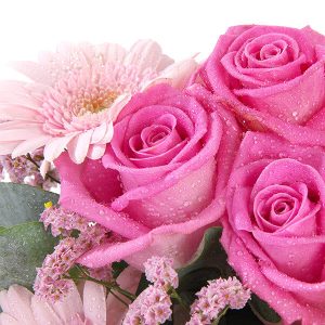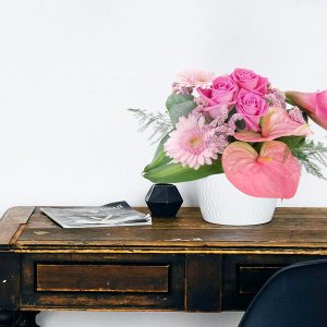Plongez-vous dans un univers romanesque en contemplant cette magnifique composition de fleurs coupées. Ses différentes teintes de rose vous emportent dans les plus grands récits d’amour, écrits avec les plus beaux sentiments.