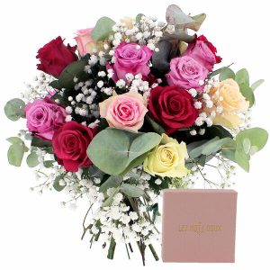 Vous cherchez le cadeau parfait pour célébrer un anniversaire ? Ne cherchez plus, nous avons ce qu’il vous faut ! Offrez à votre proche une journée douce et colorée en lui offrant ce magnifique bouquet de 15 roses pastel, accompagné de gypsophile et d’eucalyptus pour une touche champêtre.