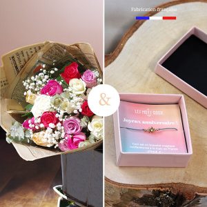 Fleur de rose + bracelet anniversaire