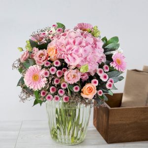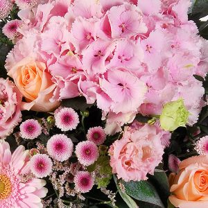 Composé d’hortensia, de limoniums, de roses et autres fleurettes de saison, le bouquet Hesperia est un véritable hymne à la douceur et à la délicatesse. Ses couleurs roses pastels et rose orange apporteront une touche de fraîcheur et de gaieté à votre intérieur.