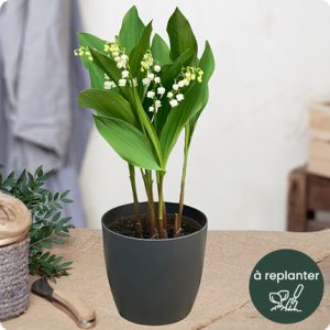 Ce muguet en pot est livré par un artisan fleuriste local en mains propres. Directement en racines, il peut être replanté à l’extérieur. Avec un peu de soins il pourra refleurir au printemps prochain !