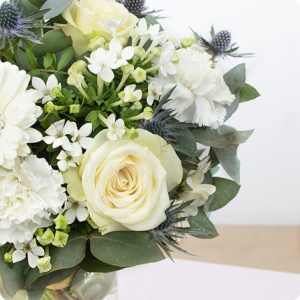 Offrez un cadeau ravissant tout au long de l’hiver avec Neige, une création hivernale composée de belles roses blanches et de délicates petites fleurs de saison. Disponible avec différentes options, ce bouquet peut être livré dans une bulle d’eau ou dans un vase, à ajouter lors de votre commande.