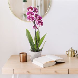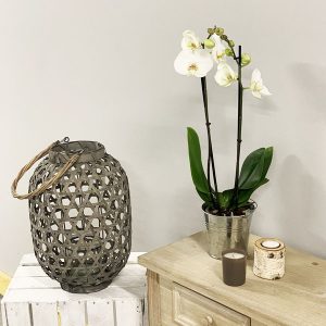 L’orchidée Phalaenopsis est une fleur qui invite au voyage et à la rêverie. Avec ses deux branches et sa hauteur de 45-50 cm, elle apporte une touche d’élégance et de délicatesse à n’importe quel intérieur. Son pot en zinc ajoute une touche moderne et tendance.