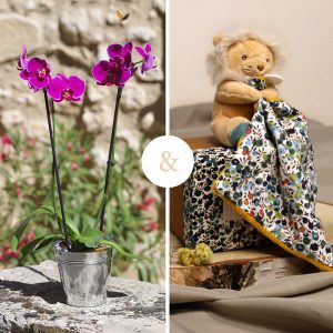 En plus de cette somptueuse plante, cette composition est accompagnée d’un doudou lion au visage craquant et au mouchoir en tissu ultra doux et apaisant. Son format est spécialement adapté à la morphologie des nouveau-nés, en faisant une peluche idéale pour éveiller leurs sens et leur apporter chaleur et réconfort.