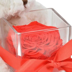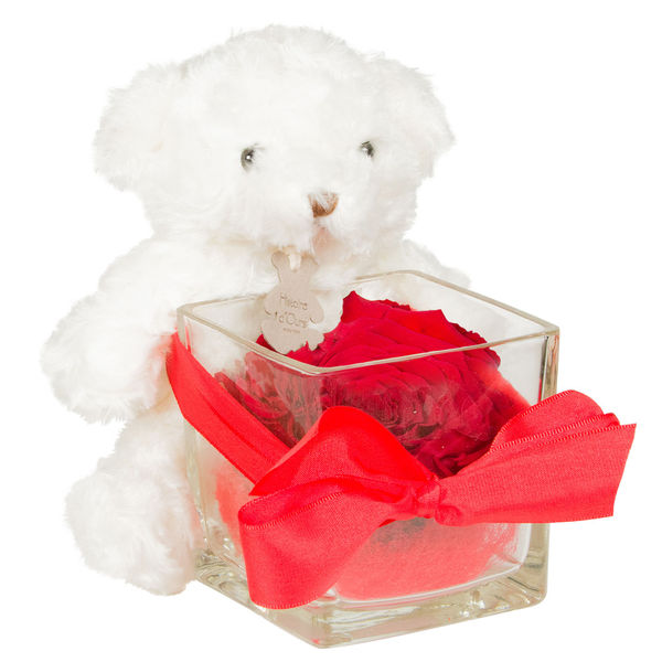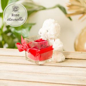 Ourson + rose eternelle rouge + verrine carree