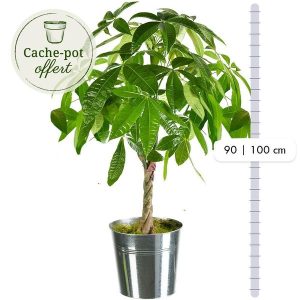 Le pachira est un arbuste à la fois élégant et robuste, qui peut être cultivé à l’intérieur ou à l’extérieur dans les régions tropicales. Son tronc fin et ses feuilles vertes apportent une touche de fraîcheur à votre intérieur, tandis que ses fleurs colorées fleurissent en été. Ce pachira est présenté dans un pot en zinc, ce qui en fait un cadeau idéal pour toutes les occasions.