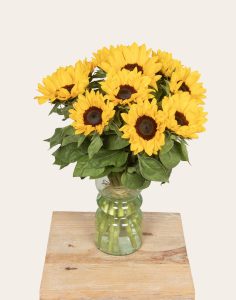 1. Réception : Afin de garantir une longue tenue à vos Tournesols, placez-les dès réception dans un vase rempli d’eau claire à température ambiante.