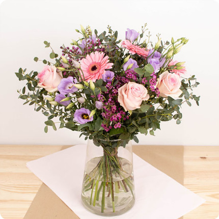 Ce splendide bouquet, conçu avec minutie par un artisan fleuriste de votre région, est une véritable ode à la beauté des fleurs. Ses couleurs roses et violettes, réunies avec harmonie, en font un cadeau idéal pour faire plaisir à vos proches.