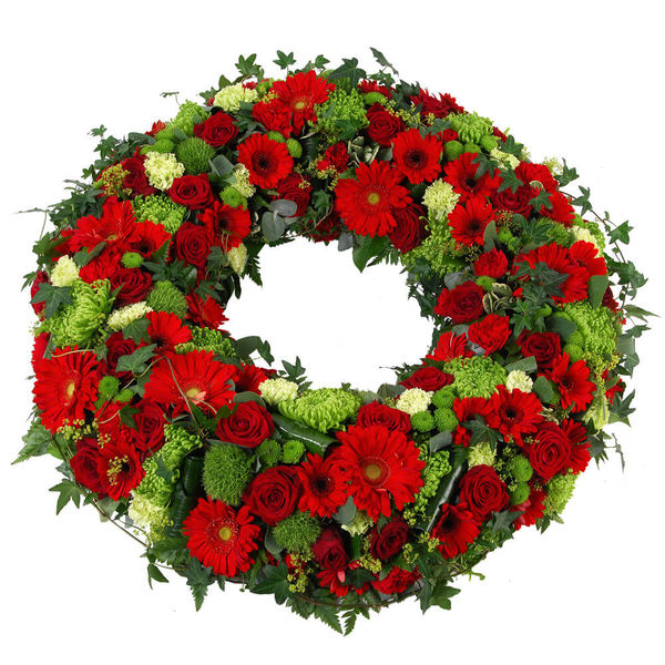 Dans les moments difficiles, les fleurs sont un moyen de transmettre un message d’amour et de soutien envers ceux qui ont perdu un être cher. La couronne de deuil dans les tons rouges et verts est une composition florale qui saura exprimer vos sentiments avec délicatesse et élégance.