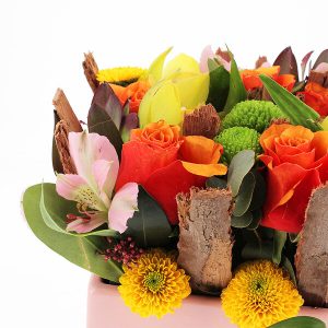 Cette subtile et audacieuse composition met en valeur l’orchidée et l’alstroméria qui servent d’écrin à la splendide rose oranger. Un mélange exceptionnel de fleurs et de couleurs pour un résultat qui remplira de gaieté et de bonne humeur vos proches.